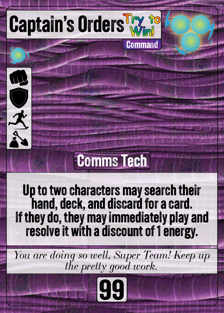 Captain's Orders: Try to Win is one of the most powerful search and play cards in the game and one of the primary ways the Comms Tech generates Captain's credits.